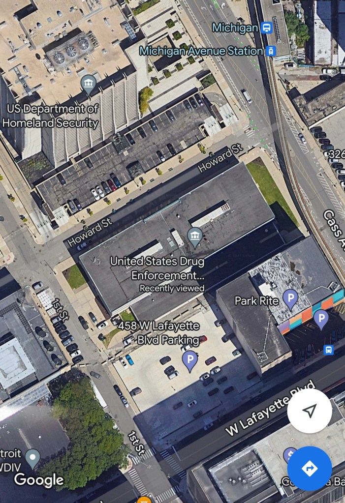 The DEA office in Detroit is a regional Division Office that serves Michigan and Ohio, according to its website. It is located at 431 Howard Street, Detroit, MI 48226. WDIV Local 4 is right next door, and the Free Press is nearby.